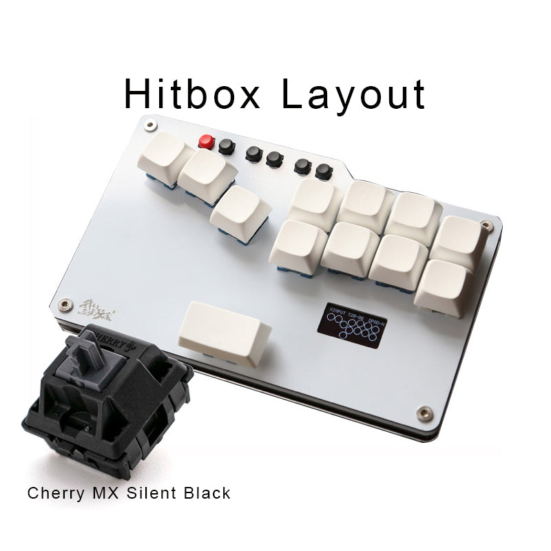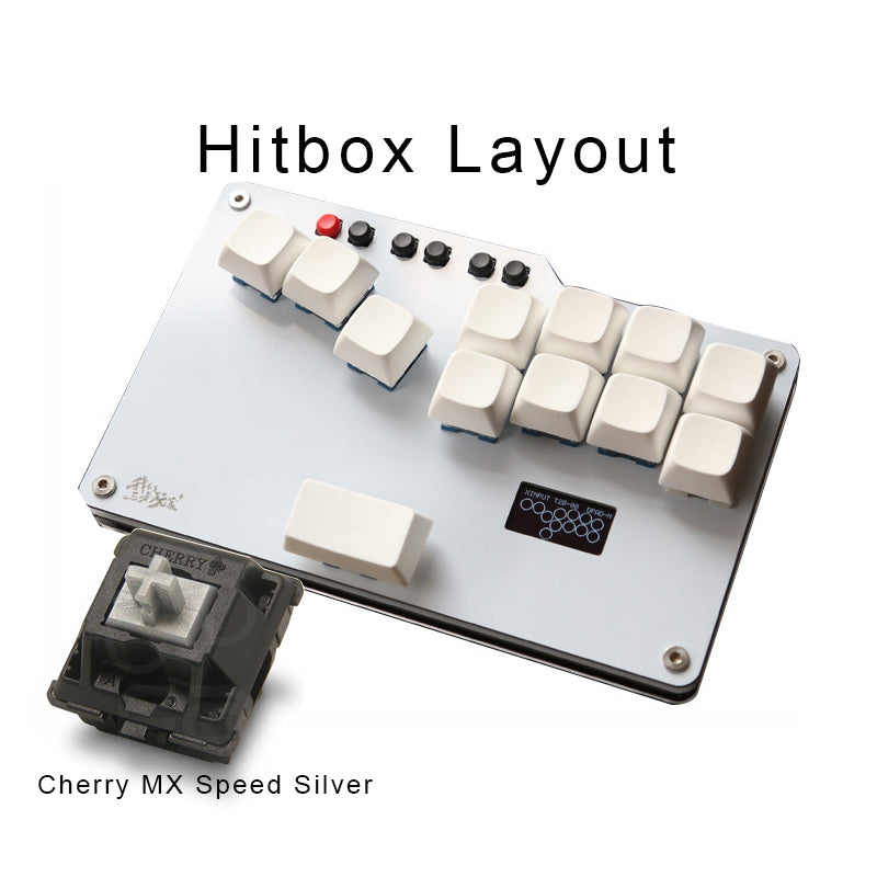We use Cherry MX Sliver Switches in the mechanical buttons of this mini hitbox. They are relatively light (close to sanwa in feel) and have a soft bump above the actuation point, which makes things somewhat tricky as you may think you have activated the button upon the tactile feel, but you actually have to travel a tad farther from the bump to actuate the switch.